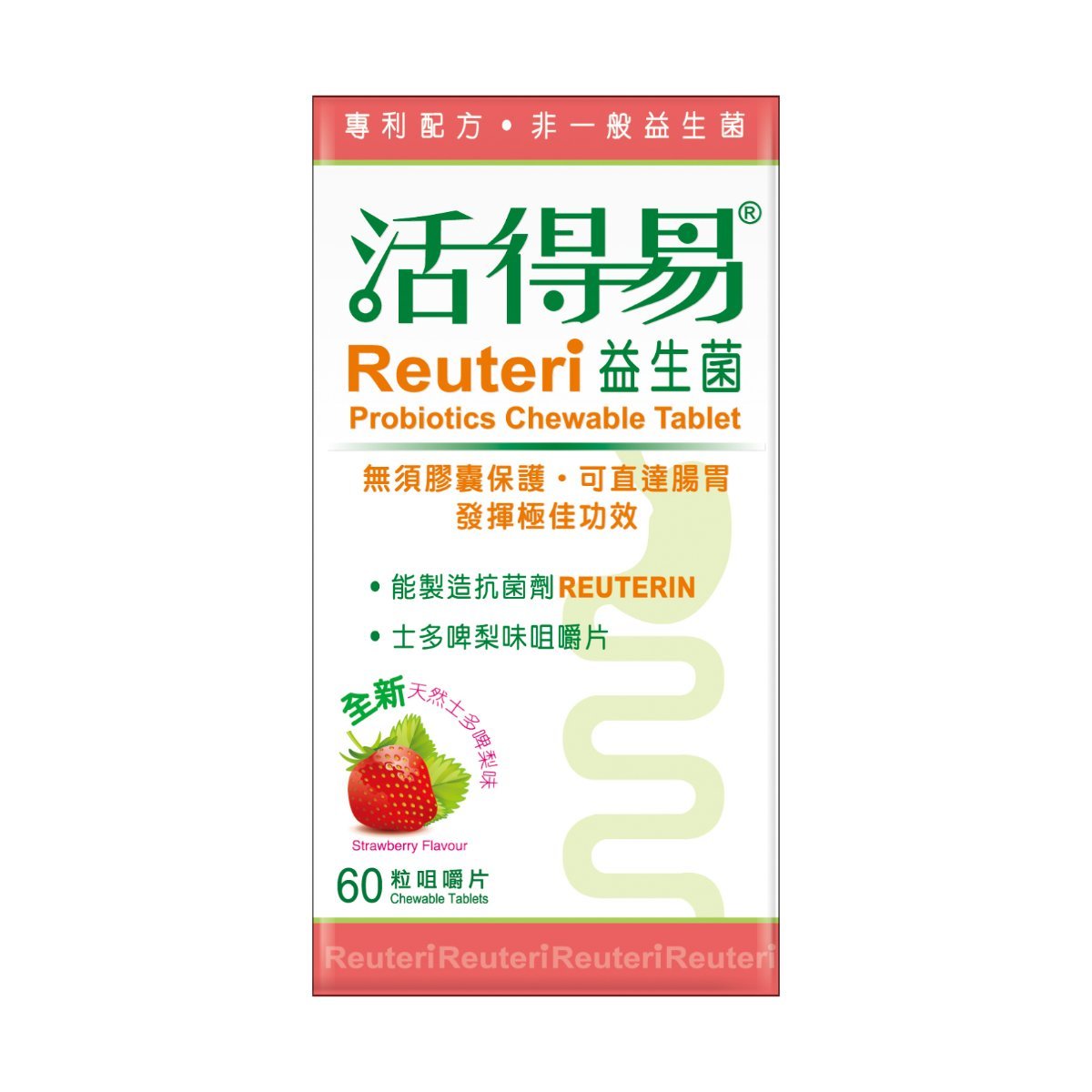 活得易專利配方DSM 17938 益生菌排裝 60粒 咀嚼片 士多啤梨味