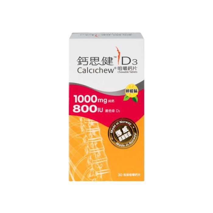 每片含: 1000mg 鈣元素 (選用碳酸鈣)及800IU 維他命D3